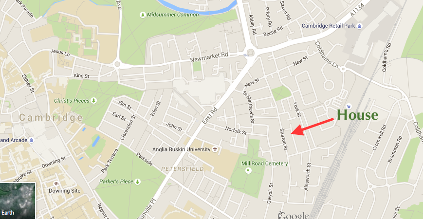 The house located in the city centre CB1 in the popular residential area between East Road and the Beehive Centre. Situated 5 minutes cycle from Cambridge Railway Station it has a quiet position at the end of a cul-de-sac. Local schools include St Matthews Primary School and Hills Road Community College.